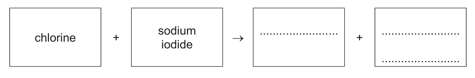 chlorine + potassium iodide → ………………………………………….. + …………………………………………..
