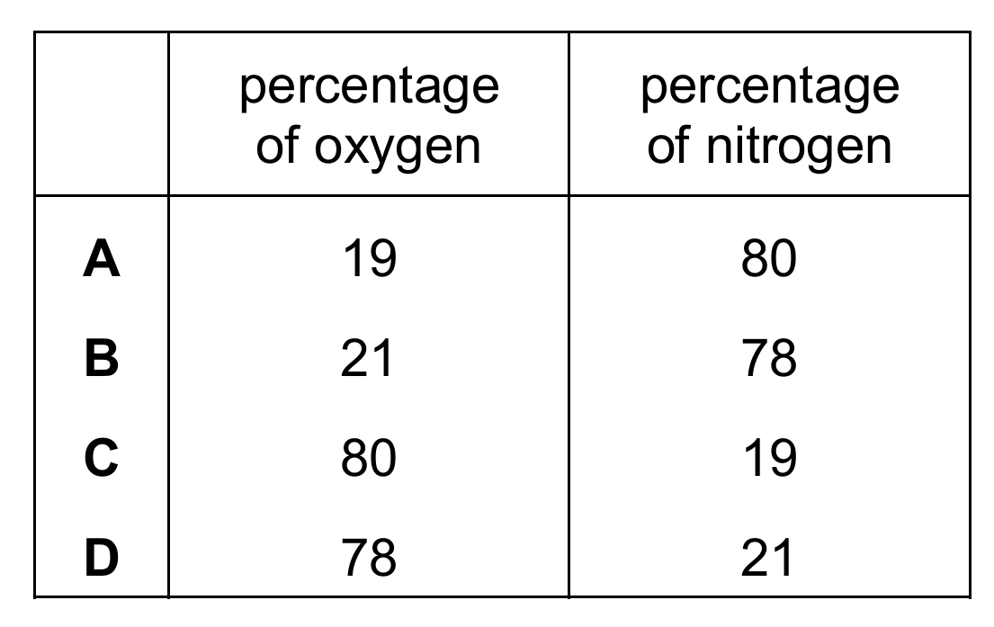 What are the approximate percentages of oxygen and nitrogen in clean, dry air?