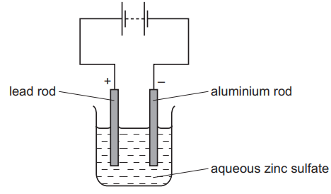 (c) (i) The aluminum rod is the cathode (negative electrode where Zn2+ ions gain electrons to form zinc metal).