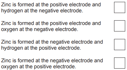 (ii) Suggest which statement about this electrolysis is completely correct.