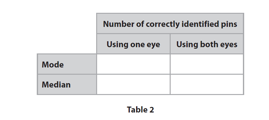 Complete Table 2 by determining the mode and the median for the data shown in Table 1.