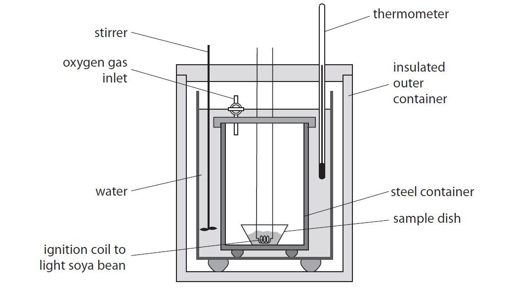 . weigh beans / same mass of beans / (calculate) per gram of food / eq (1)
