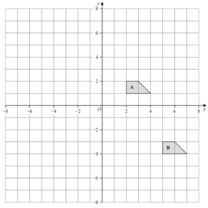 (a) Describe fully the single transformation that maps shape A onto shape B.