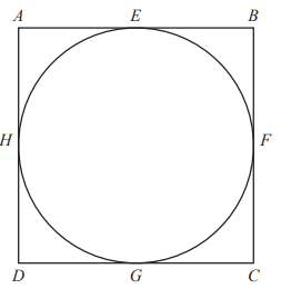 The circle touches the square at points E, F, G, and H. The area of the square is 81 cm². Calculate the total length of wire needed to make the square and the circle, correct to 3 significant figures.