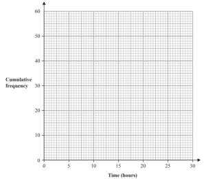(a) On the grid below, draw a cumulative frequency graph for the information in the table.