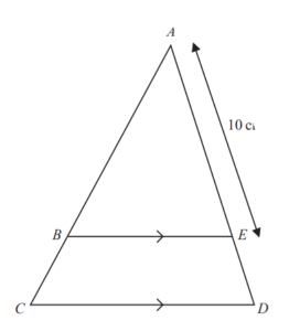 In the diagram, ABC and AED are straight lines. BE is parallel to CD. AE = 10 cm and CD = 1.5 × BE.
