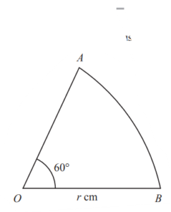 OAB is a sector of a circle with center O and radius r cm.
