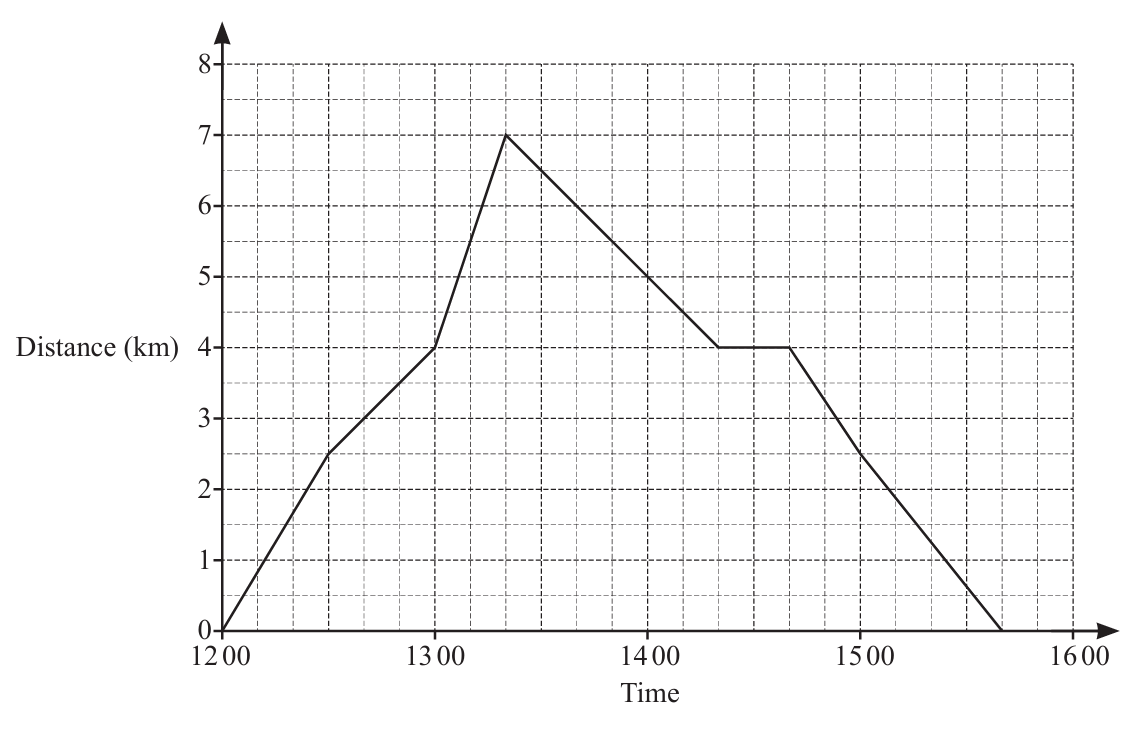 (b) The student is travelling fastest between 13:00 and 13:20 because the gradient is steepest (distance changes most rapidly).