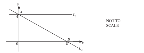 Slope of $L_2$ = (0-4)/(8-0) = -1/2. Using point A (0,4), equation is y=(-1/2)x+4.