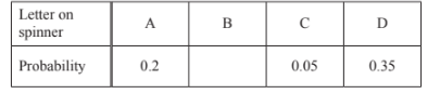 A spinner is spun. The possible outcomes are A, B, C or D.
