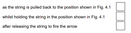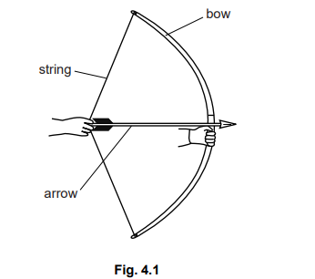 An archer pulls the string of his bow, and moves the arrow to the position shown in Fig. 4.1.