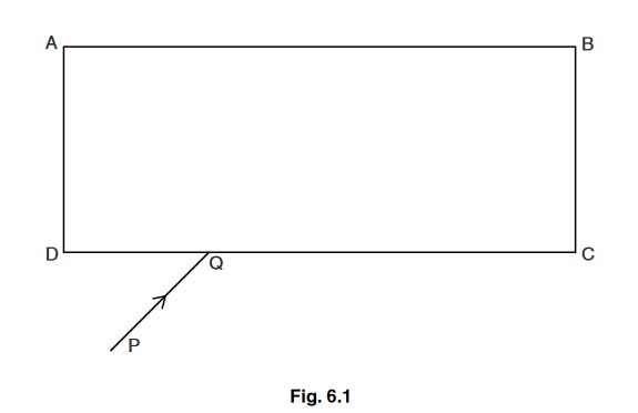 Fig. 6.1 shows a glass block ABCD surrounded by air. A ray of red light, PQ, is incident on face CD of the block.