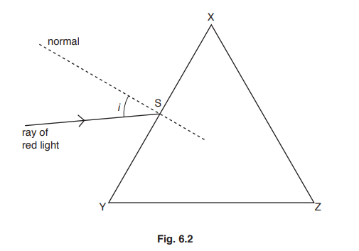 Fig. 6.2 shows a ray of red light from the source incident on the face XY of a glass prism at point S.