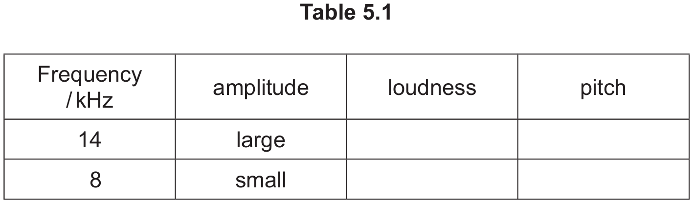 (c) Complete Table 5.1 to describe differences in loudness and pitch of two different dolphin sounds.