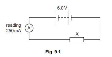 Fig. 9.1 shows a series circuit. The resistances of the ammeter and of the battery may be ignored.