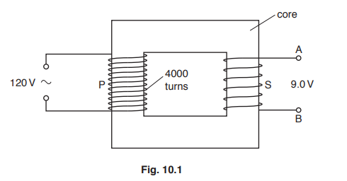 (i) The primary coil P has 4000 turns and an input of 120 V. The secondary coil S has an output of 9.0 V.
