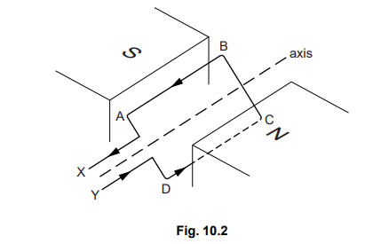 (iii) The ends X and Y of the loop are connected to a battery using brushes and a splitring commutator.