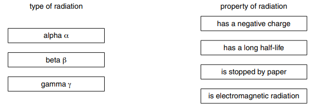 (a) Draw one straight line from each type of radiation to a property of that radiation.