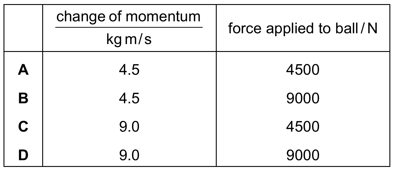 Substituting the values, $F = \frac{9.0 \text{ kg m/s}}{1.0 \times 10^{-3} \text{ s}} = 9000 \text{ N}$.