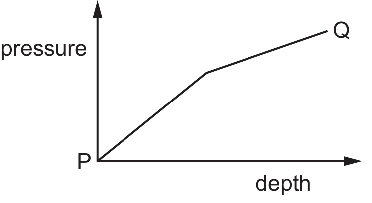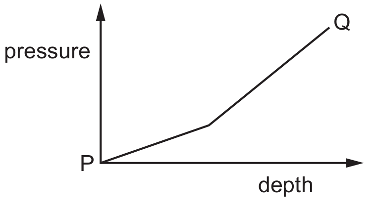 Therefore, the slope of the pressure-depth graph must be steeper for the bottom liquid compared to the top liquid.