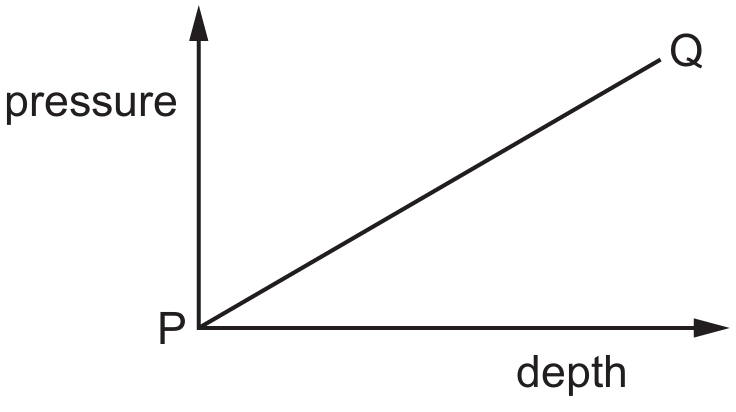 Since pressure is plotted on the y-axis and depth on the x-axis, the gradient (slope) of the graph is equal to $\frac{\Delta p}{\Delta h} = \rho g$.