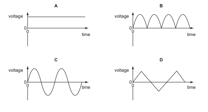 Which graph shows how the voltage of a simple a.c. generator varies with time?