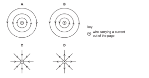 The diagram shows this experimental arrangement and the current direction in the coil.