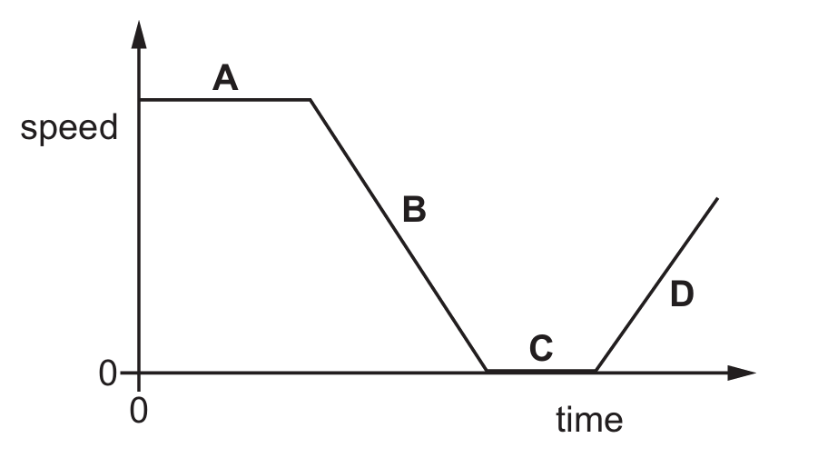 Section C represents a period where the speed is strictly equal to $0$.