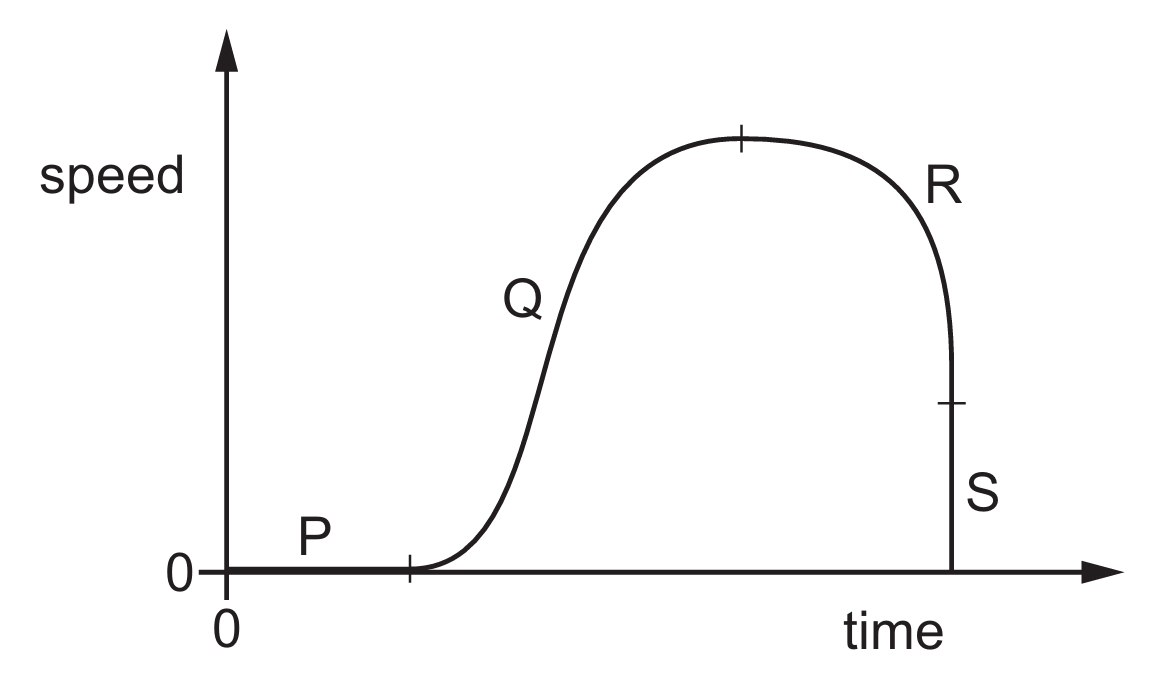 Sections $Q$ and $R$ are curved, meaning the gradient is constantly varying as the car speeds up and slows down.