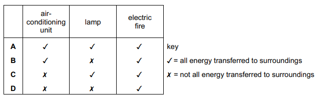 An air-conditioning unit, a lamp and an electric fire all receive electrical energy from the mains supply.