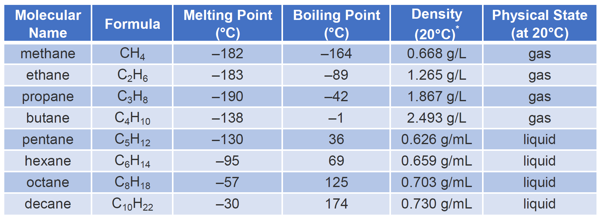 - State that the bonding in alkanes is single covalent and that alkanes are saturated hydrocarbons