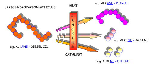 - Describe the manufacture of alkenes and hydrogen by the cracking of larger alkane molecules using a high temperature and a catalyst