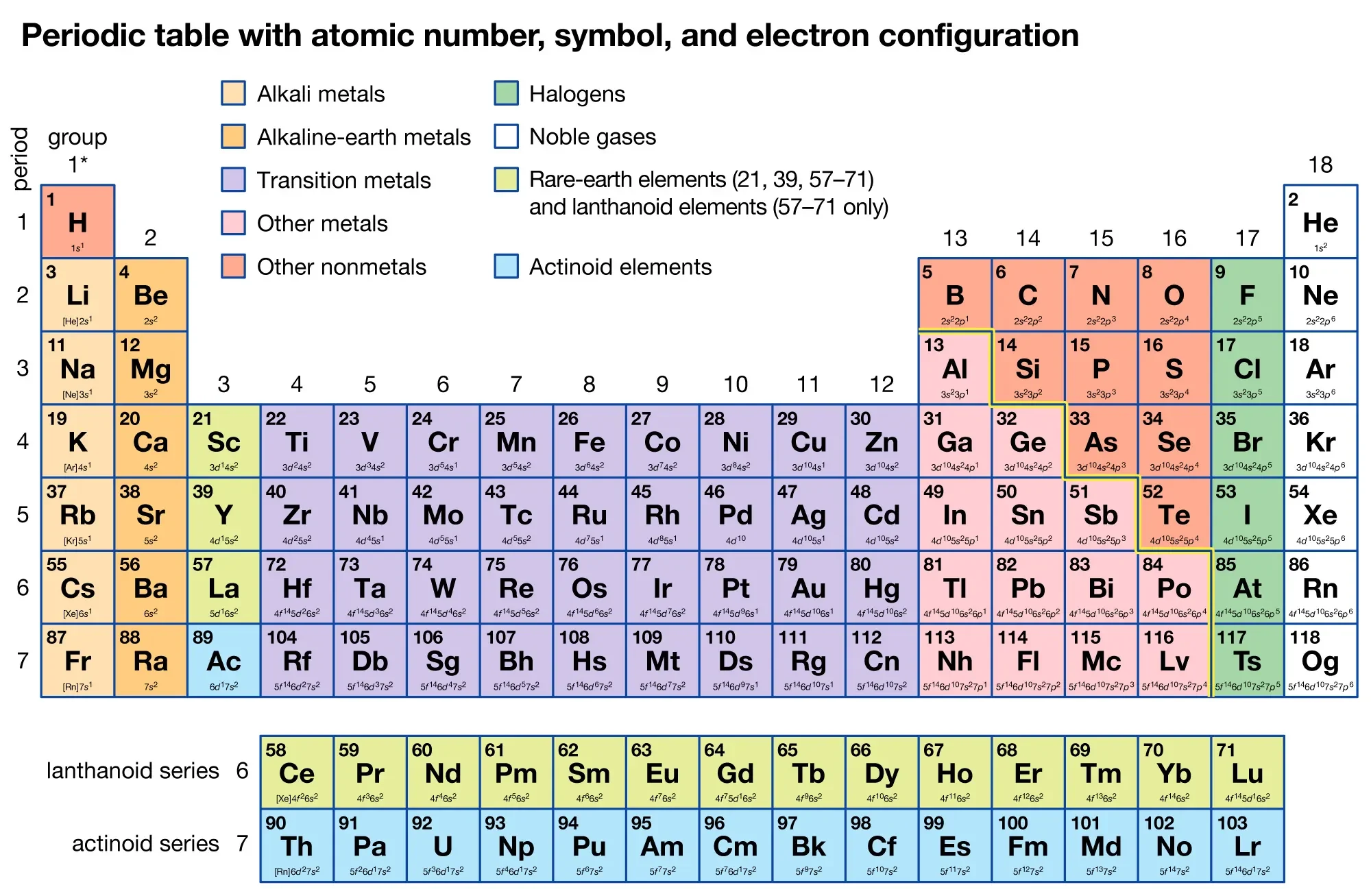 - Group number (for main-group elements) → tells you the number of electrons in the outer shell.