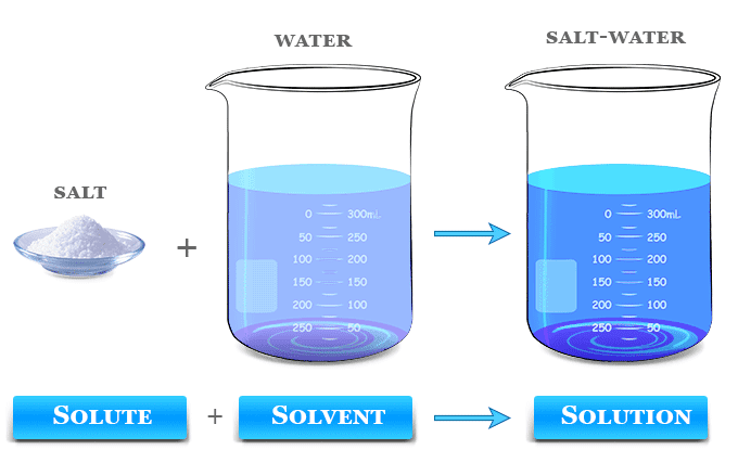 - Example: Sodium chloride is the solute when salt dissolves in water