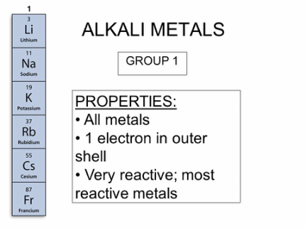 - Group 1 elements are known as alkali metals.