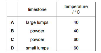 A Carbon dioxide is produced when limestone reacts with hydrochloric acid.