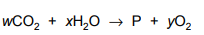 The incomplete equation for photosynthesis is shown.