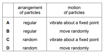 Sodium chloride is a liquid at 900°C. Which row describes the arrangement and the motion of the particles in sodium chloride at 900°C?