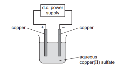 Aqueous copper(II) sulfate is electrolysed using copper electrodes.