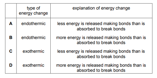 Plant cells use energy from sunlight for photosynthesis. Which row describes and explains the energy change that occurs?