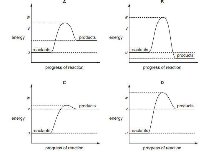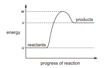 The reaction pathway diagram for an endothermic reaction is shown. u, v and w are known energy values