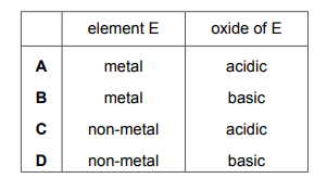 Element E is in Group II of the Periodic Table. Which row describes element E and its oxide?