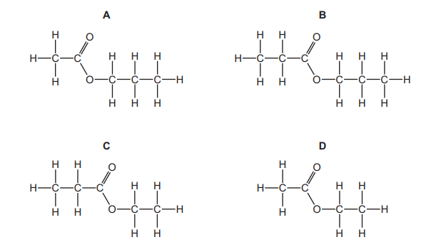 Which displayed formula represents the ester formed by the reaction of propan-1-ol with ethanoic acid?