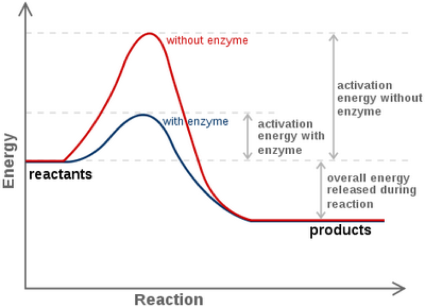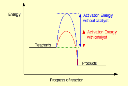 (e) adding or removing a catalyst, including enzymes using collision theory - State that a catalyst decreases the activation energy, $E_a$, of a reaction