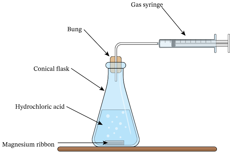 - Add magnesium ribbon to hydrochloric acid in a conical flask.