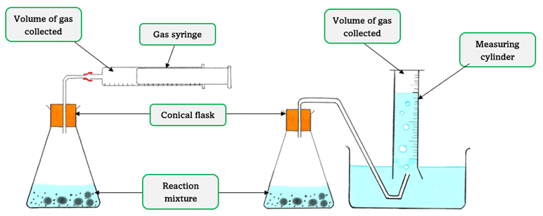 - Collect the hydrogen gas in a gas syringe and measure the volume at fixed time intervals.