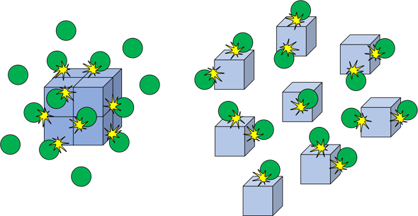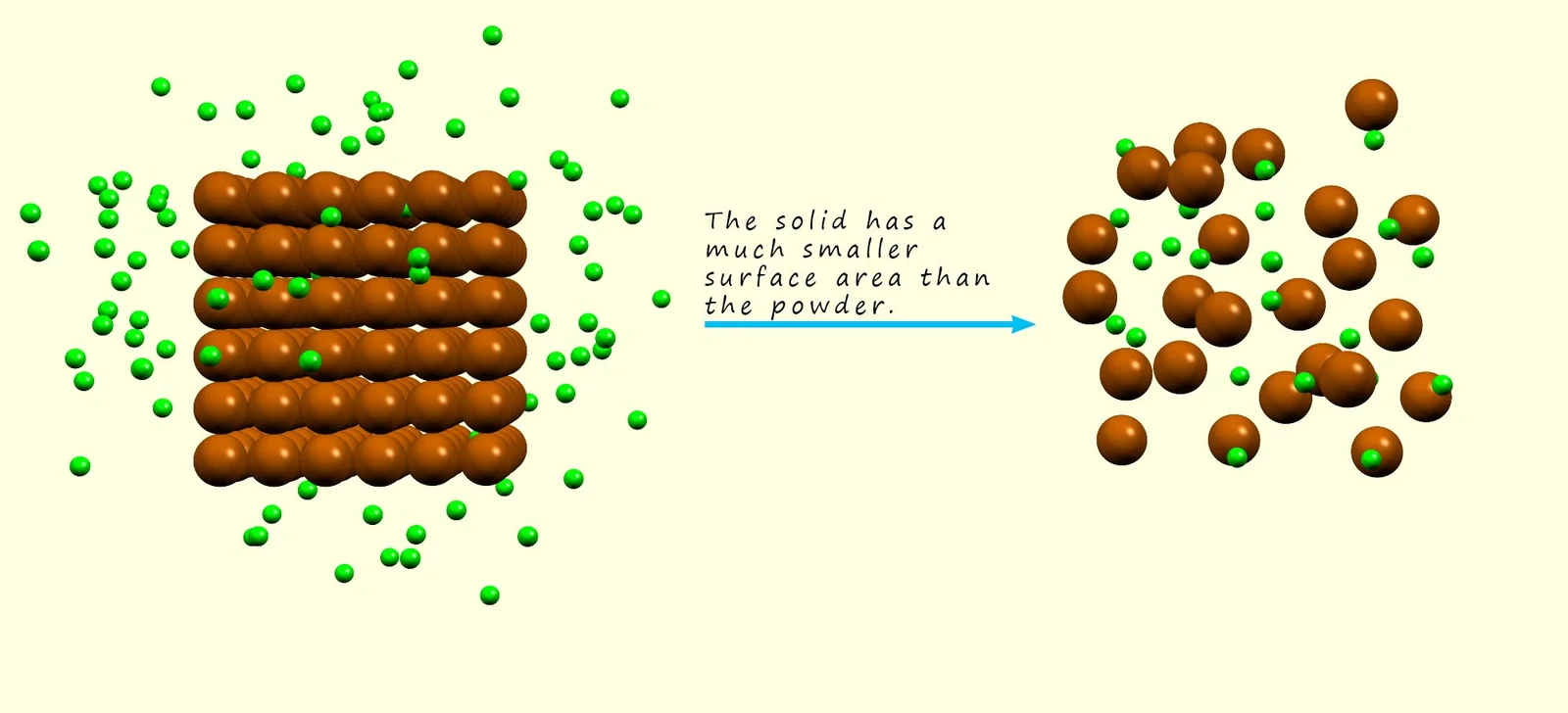 - Breaking a solid into smaller pieces or powder increases surface area.