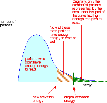 - This means more reacting particles have enough energy to overcome the energy barrier.