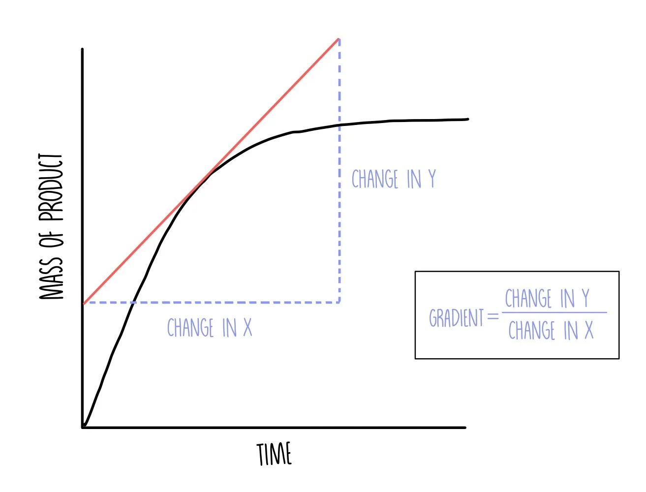 - Describe practical methods for investigating the rate of a reaction including change in mass of a reactant or a product and the formation of a gas