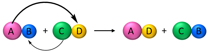 Example: \( 2\text{Na} + 2\text{H}_2\text{O} \rightarrow 2\text{NaOH} + \text{H}_2 \)